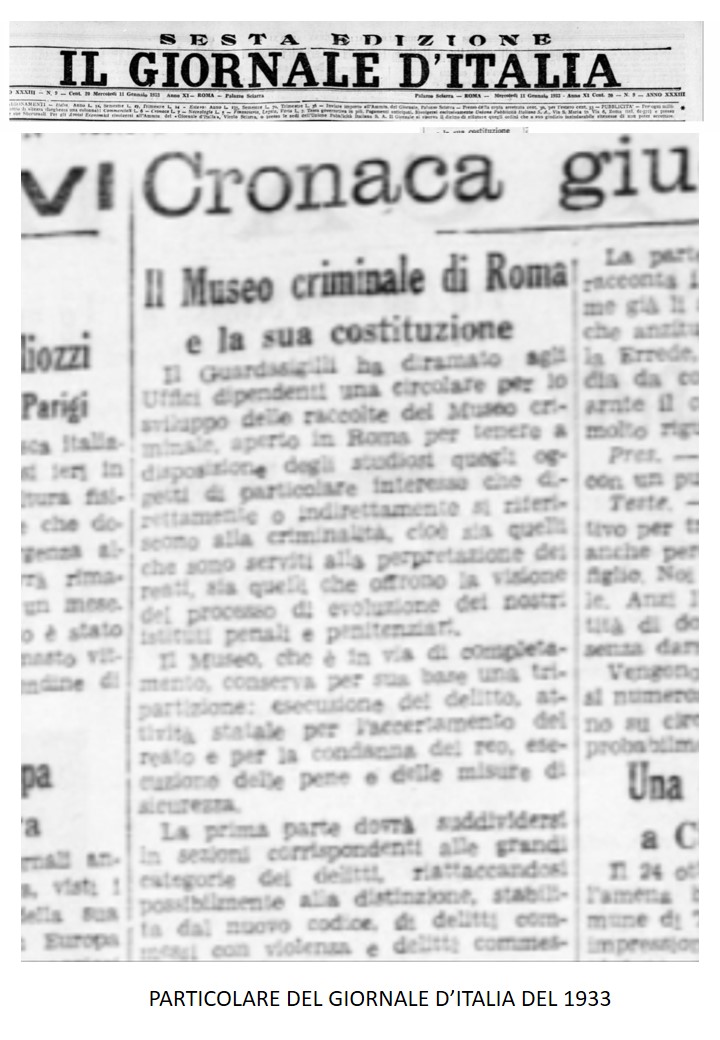 On “Il Giornale d’Italia” of 11 January 1933, an interesting printing article was detected which documents a circular sent by the Guardasigilli to all employees to try to find useful objects to make the criminological museum recently inaugurated and which could be relevant to understand the reasons for a possible “deception” that has hidden behind […]